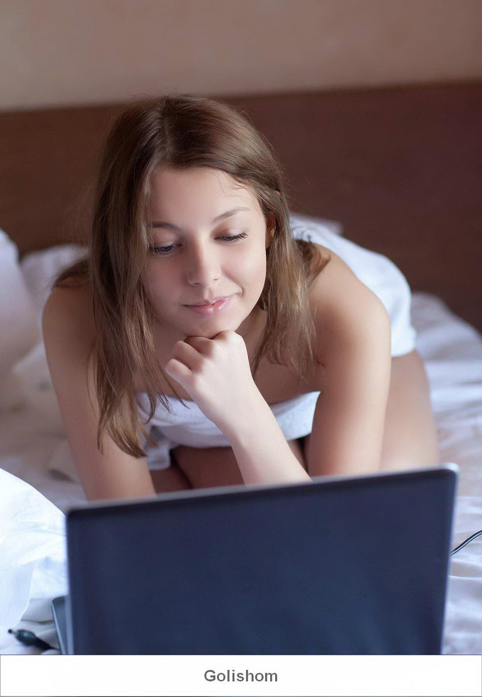 Девушка проснулась и совсем голенькая без одежды, решила проверить почту на ноутбуке, она красиво изогнулась на кровати и смотрела в монитор, ее попка без трусиков была так нежна, а побритая писичка поражала своей красотой, ее половые губы были прекрасны. Она прилегла и выставила свою попку на показ, между ягодицами была так красиво обнажена ее интимная зона. Легкая эротика с утра, это прекрасно.