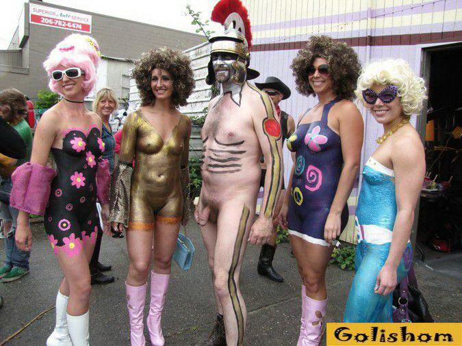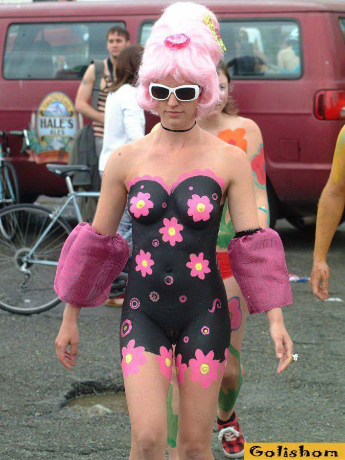 Поверьте, Боди-Арт бывает не только творческим и преследующим истинное искусство в рисовании на человеческом теле, но и прикольный Боди-Арт. Тем самым веселые люди нудисты не только хотят преуспеть в рисовании и так называемом Боди-Пейтинге, но и чисто поржать над собой и окружающими. Ведь все что связанное с позитивом всегда имеет огромную популярность и несет в мир радость и смех. Так посмеемся вместе над этими удивительными людьми и если у вас на лице появилась хоть маленькая улыбка, то значит эти люди старались не зря...