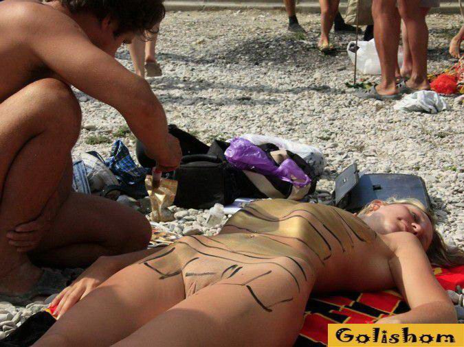 Боди-арт на пляже нудистов