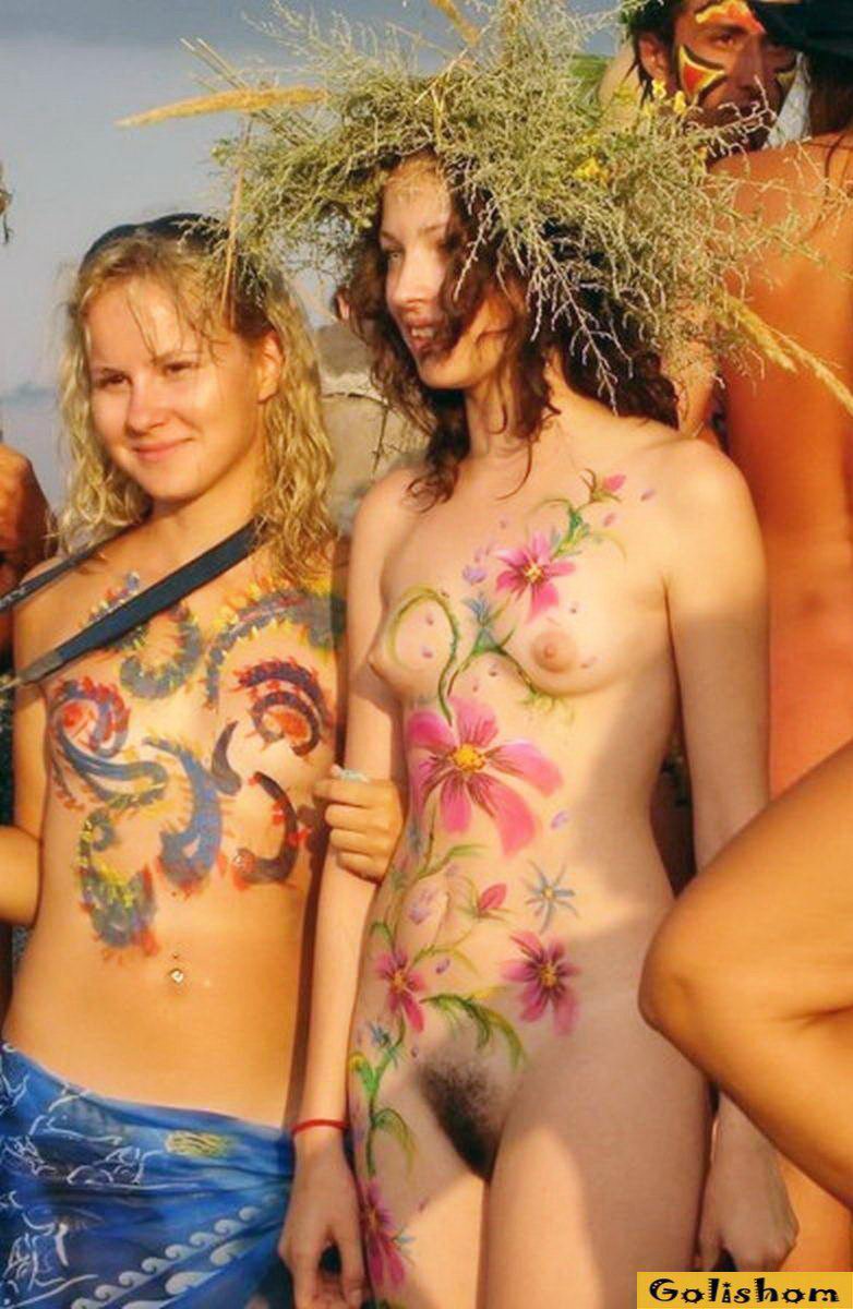 Боди-арт на пляже нудистов