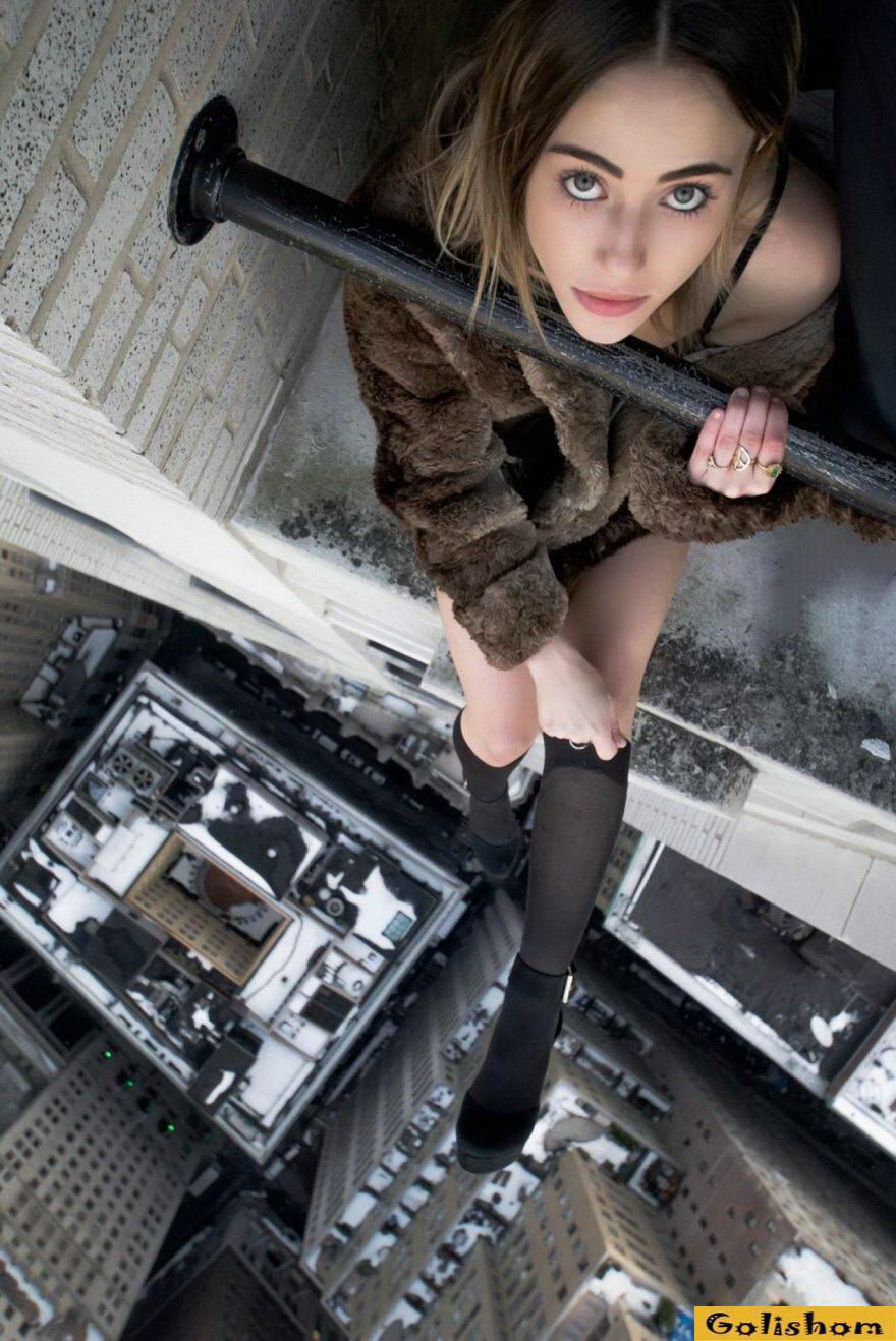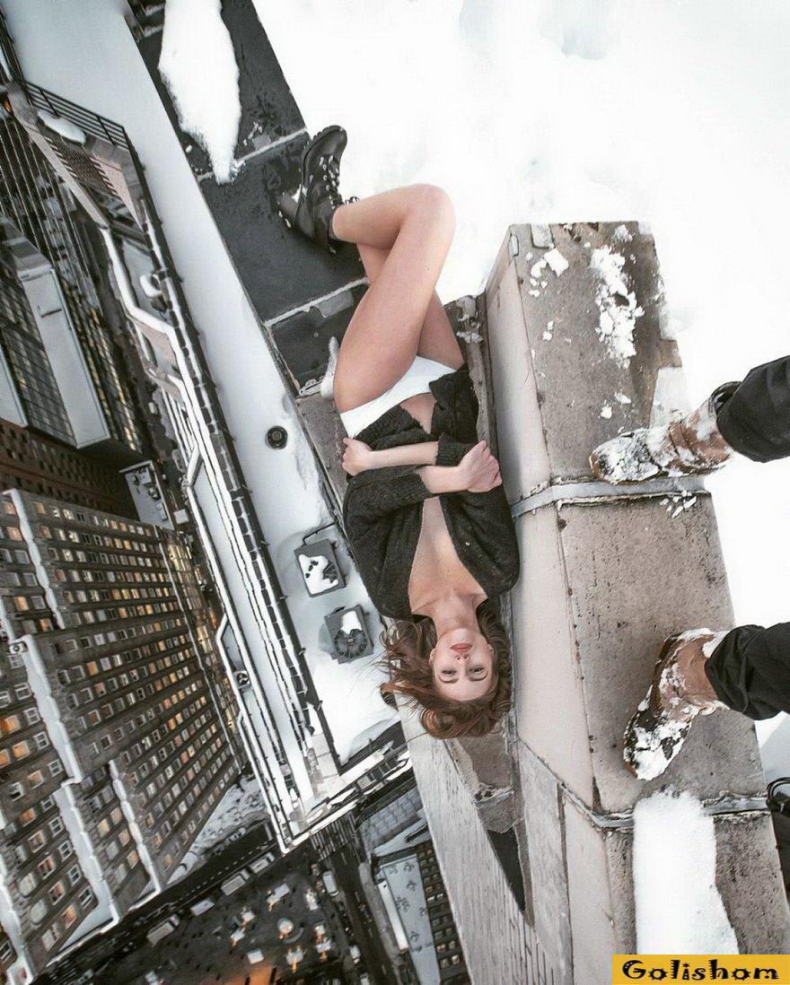 Модели на снимках Мара Ширасуны часто стоят практически на самом краю крыши.
