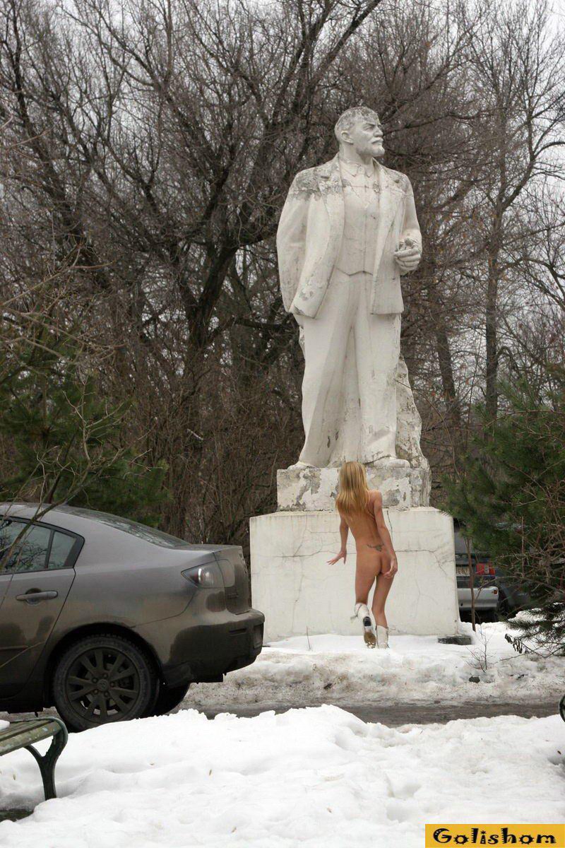 Голая нудистка пришла зимой в парк и не дожидаясь лета разделась до гола. Девушка отлично понимала что делает и ей было абсолютно все рано что про нее скажут обычные прохожие. Девушка попросту была эксбеционисткой и ее сущность так была непокорна мирским обстоятельствам, что постоянно подрывала внутренний мир и бросала обществу вызов. Голая зимой это круто решила блонда и прогулялась босиком по снегу.