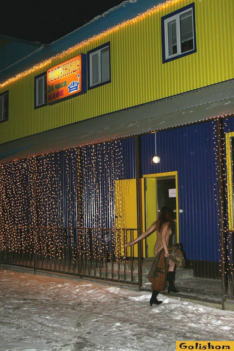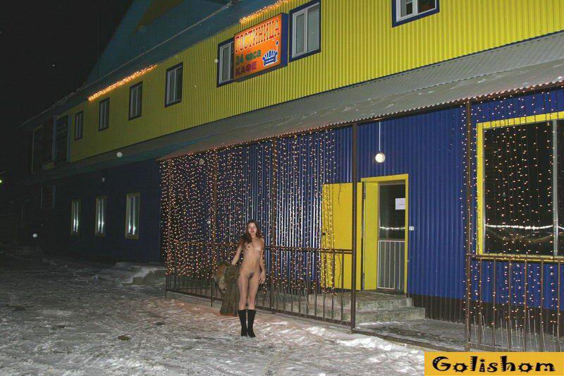 Голая зимой на улице