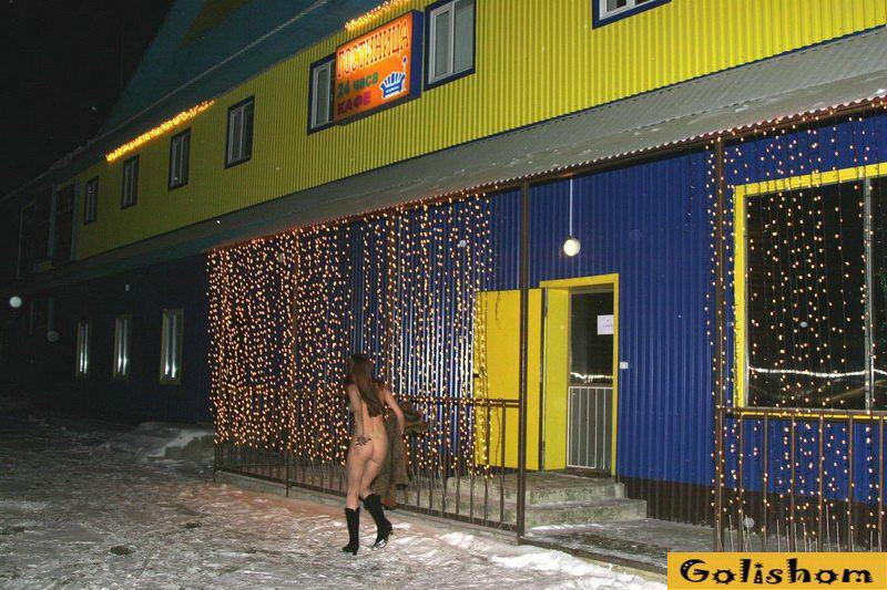 Голые девушки в кафе и на улице