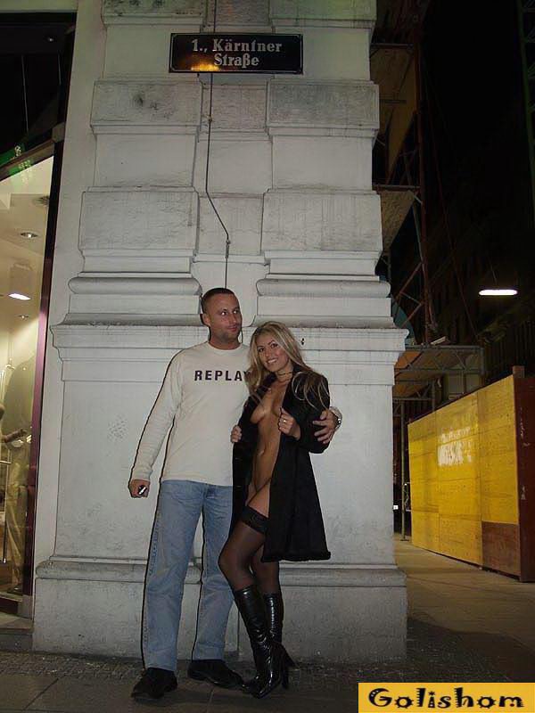 В Европе есть места, в которых публичное обнажение не является чем-то противозаконным. Можно зайти в бар пропустить рюмочку и внезапно увидеть шикарную девицу без нижнего белья. Посмотрите на фото стройной брюнетки, решившей оголить свои сиськи. Девушка не страдает от переизбытка комплексов - она разгуливает по общественным местам и поражает мужские сердца своей красотой. Очень сексуальная самка, не пропустите ее фотосессию.