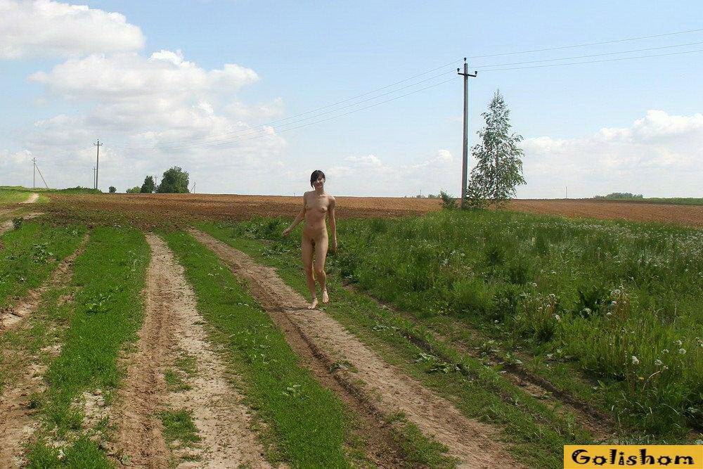 Публичное обнажение девушки на трассе