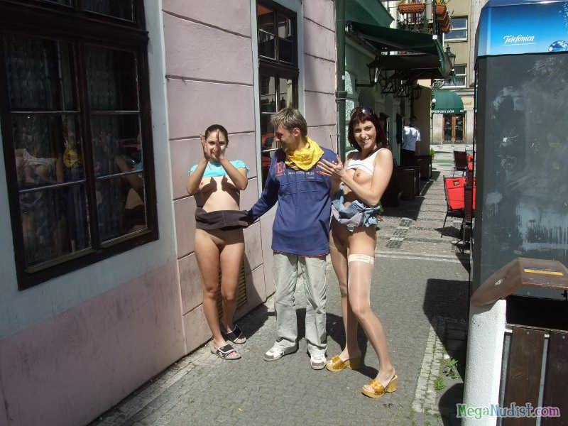 Голые девушки в кафе и на улице