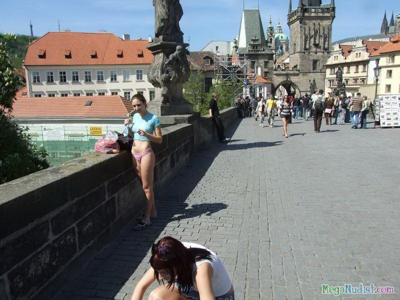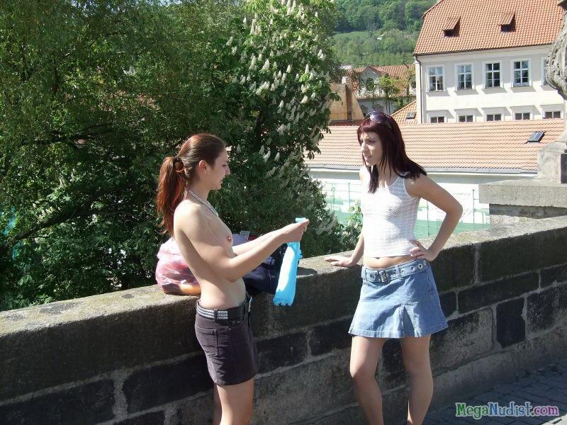 Наши уже столь известные девчонки совсем разошлись и их уже не остановить. Как говориться Остапа понесло и тут началось. Ну так вот, красивые малышки так разгорячились своим дурачеством, что начали раздеваться прям на улице. Прохожие кто с улыбкой, а кто с обсуждение проходили мимо и поглядывали на двух милашек. Ну а девушки продолжали дурачиться и у них это очень прикольно получалось.