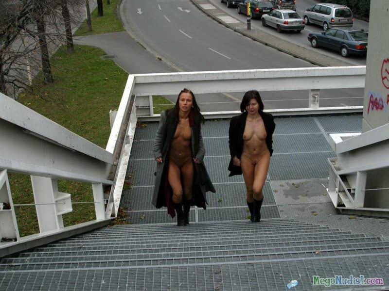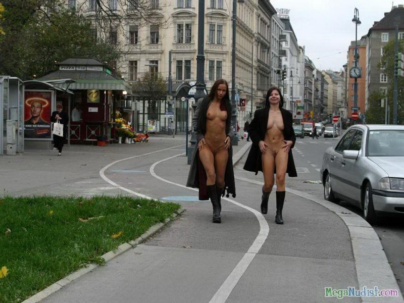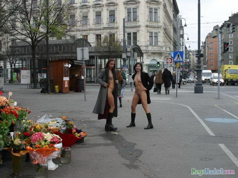 Две очень отчаянные особы решили на то, чтоб прогуляться голышом по улицам. Ну как голышом, они распахиваю.т свои плащи под которыми абсолютно ни чего нет и так изящно позируют на фото камеру. Девушки словно две нимфы плывут по улице и прохожие только смотрят с удивлением на этих молодых красоток...