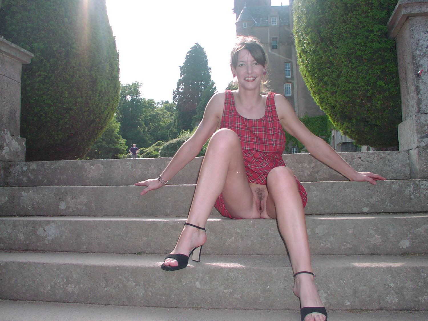 Девки без трусов поднимают платья на улице