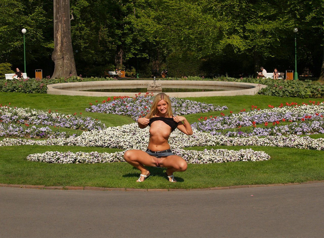 Обнажение блондинки на улице