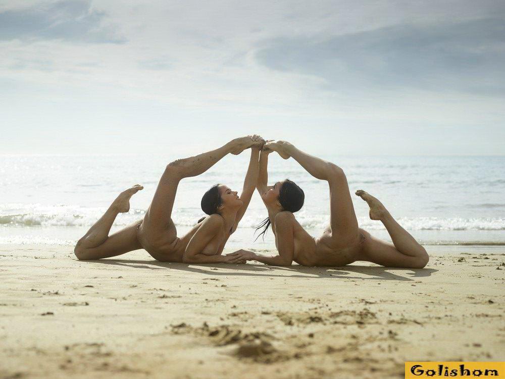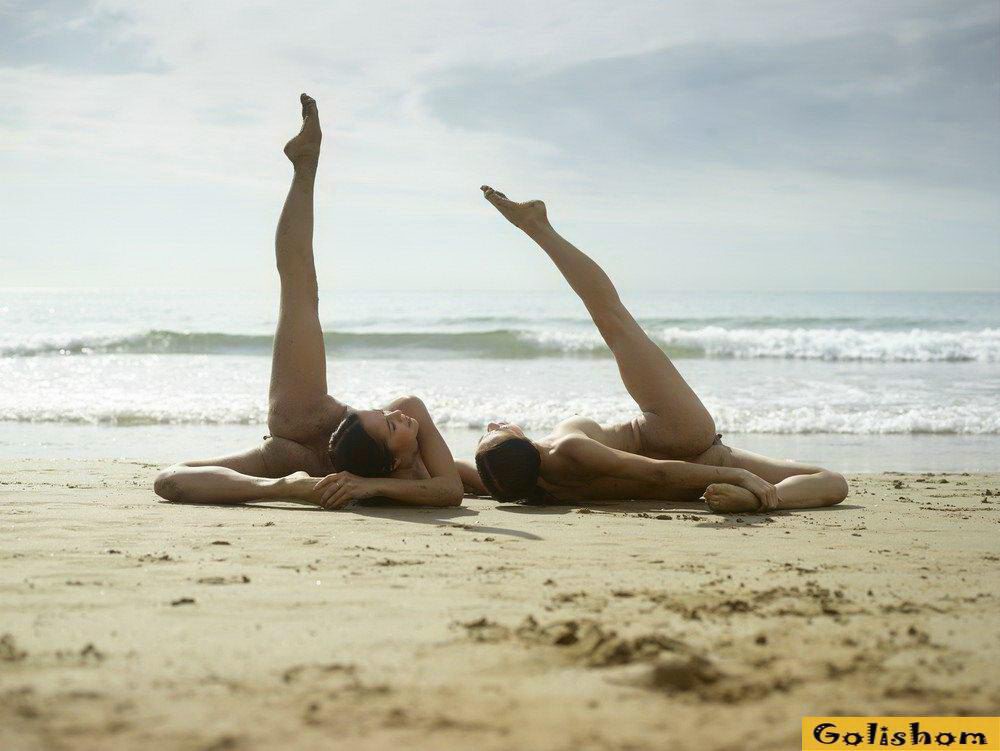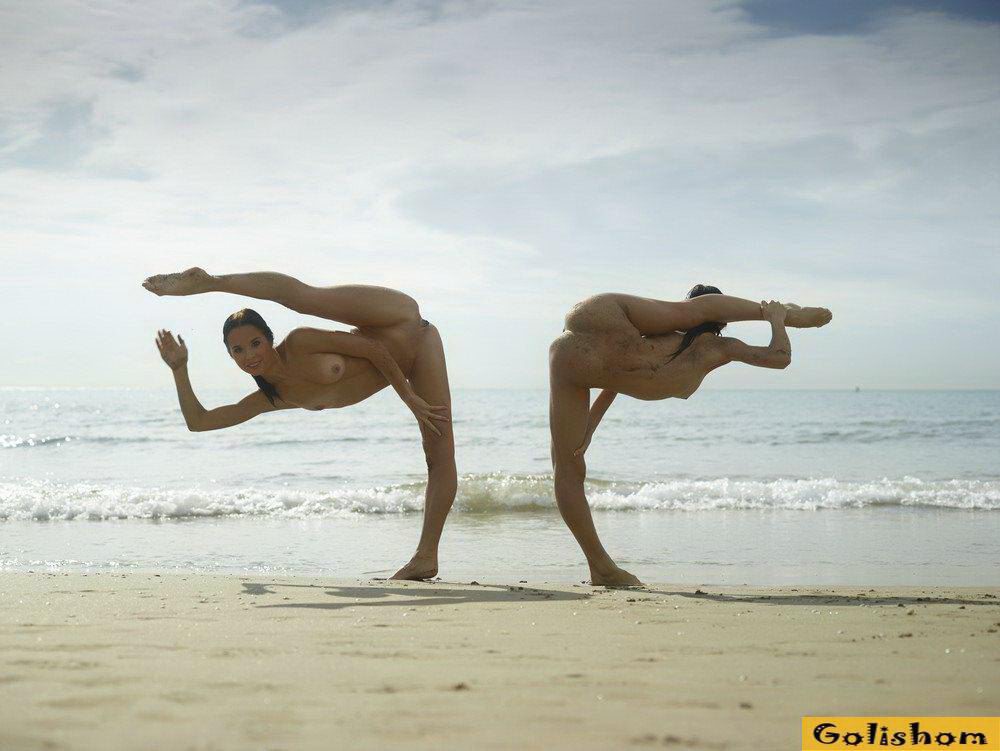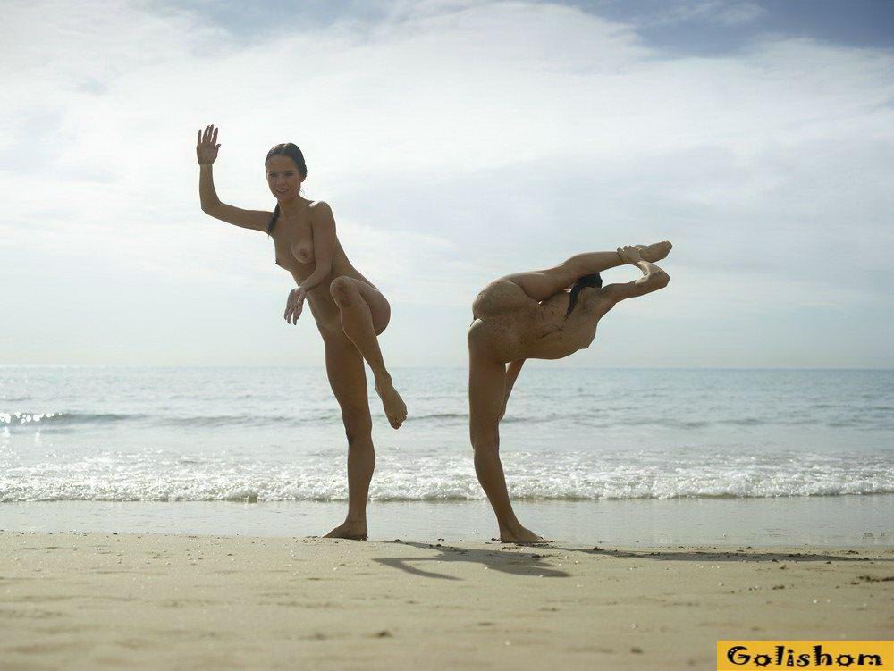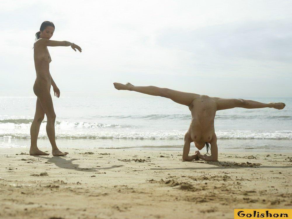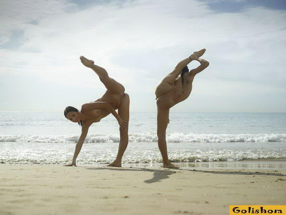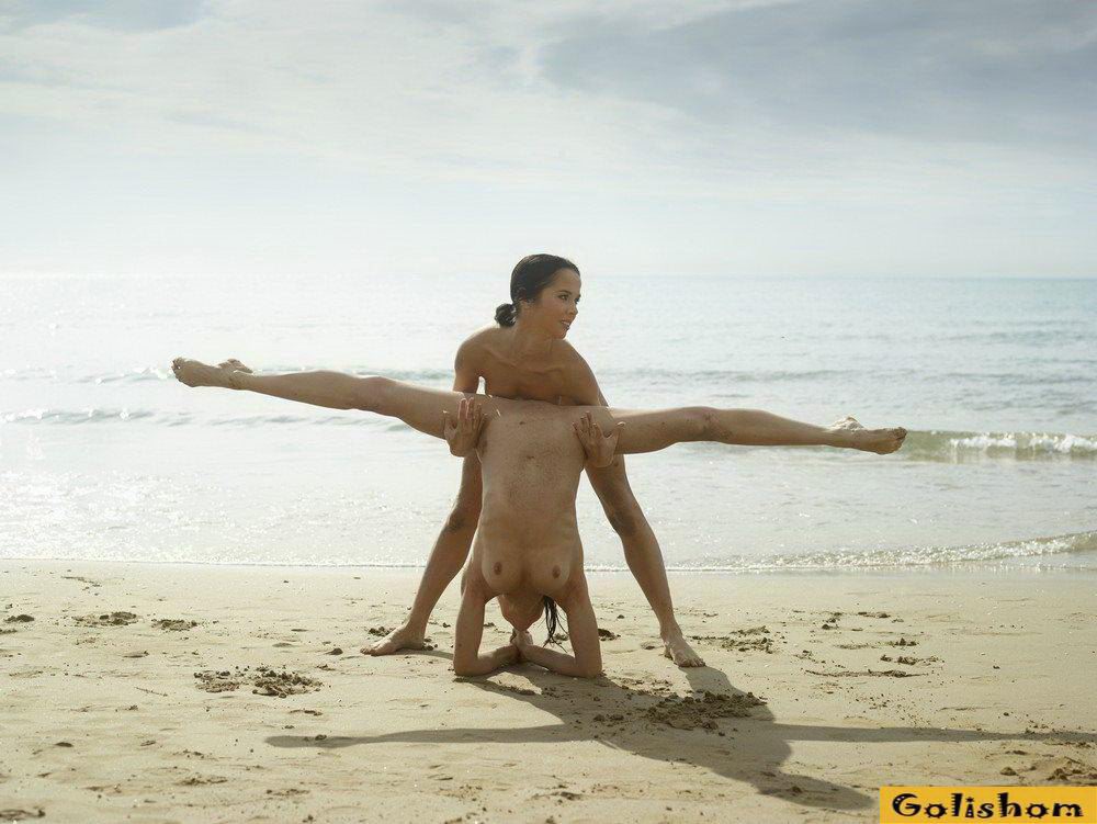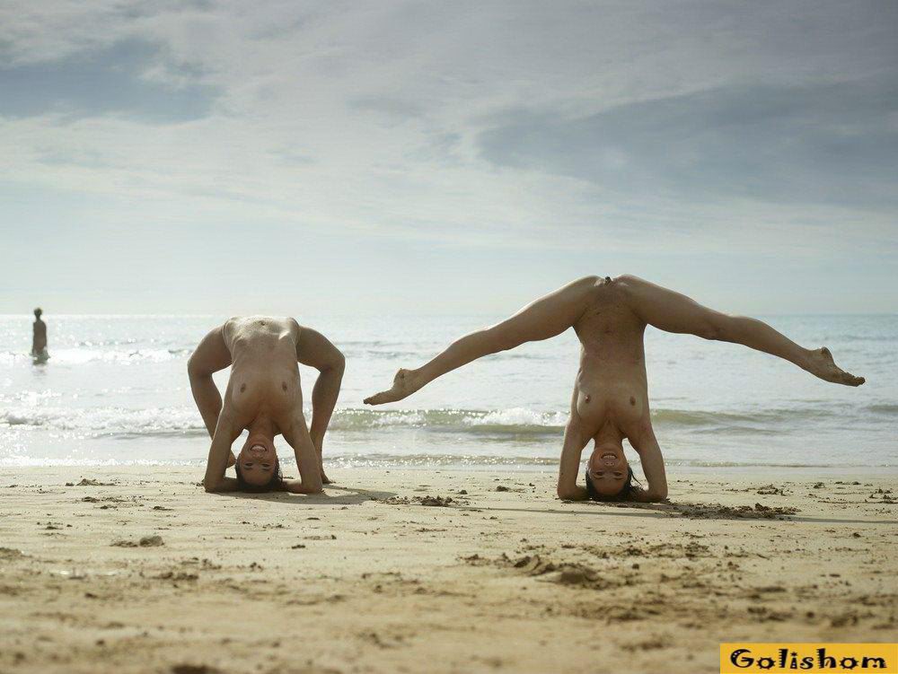 Ах эти прекрасные Гимнастки голышом, сколько в них грациозности и сколько они делают красивого. Девушки на пляже продемонстрировали свои таланты и показали какая у них прекрасная растяжка. Они так мило проделывали на фоне заката эротичные фигуры, что дух захватывало от такого вида.