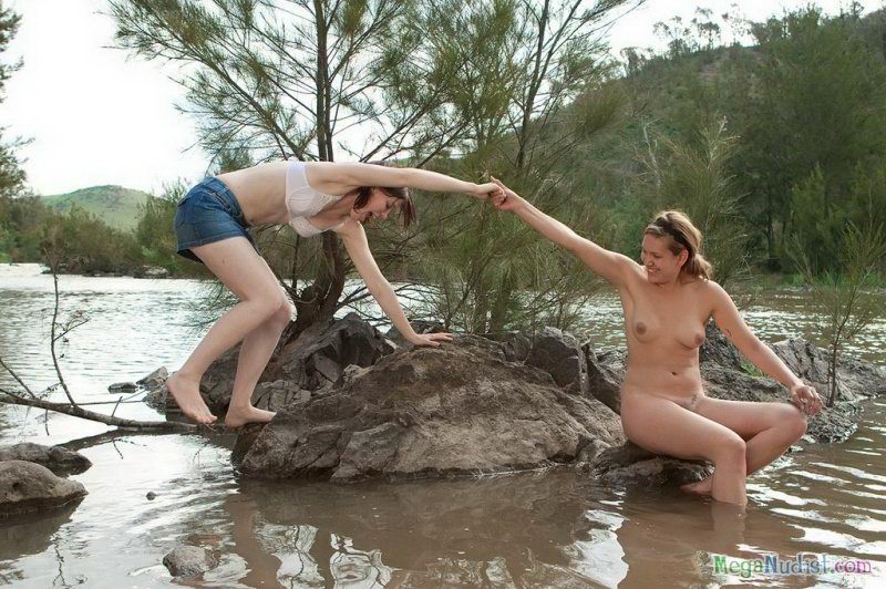 Голые девушки нудистки у водопада
