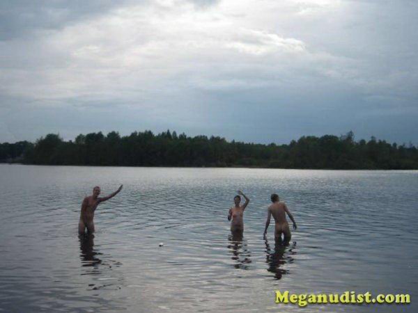 Купание нудистов на озере