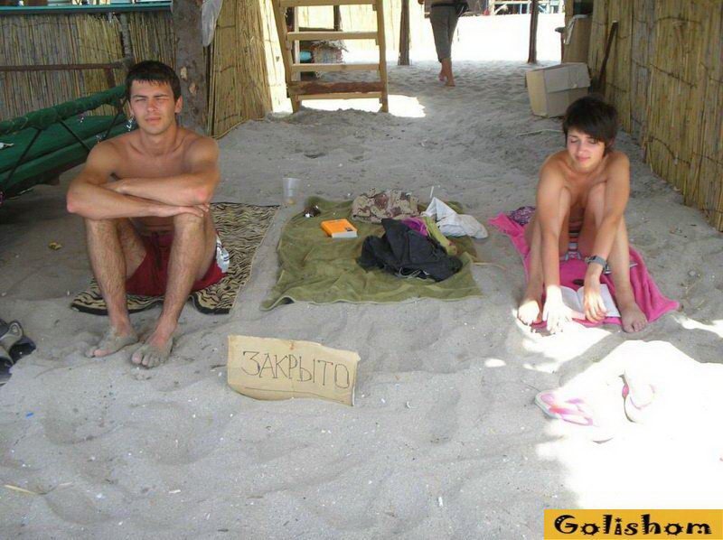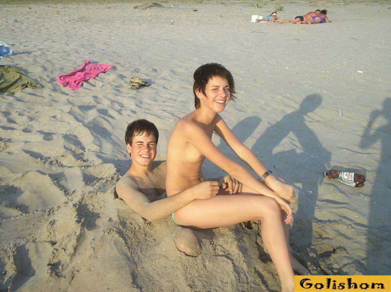 Частная парочка приехала на море и они не хотели проводить обычно отпуск как все. Не долго думая влюбленные скидывают с себя одежду и наслаждаются отдыхом в голом виде. Ведь мы не так часто посещаем морские берега и хочется провести время как можно веселее. Вот и эта парочка начинающих нудистов уже научились оголяться на публике и ведут себя очень смело. Девушка с маленькими сиськами постоянно смеется и ее по видимому очень нравится то что они делают.