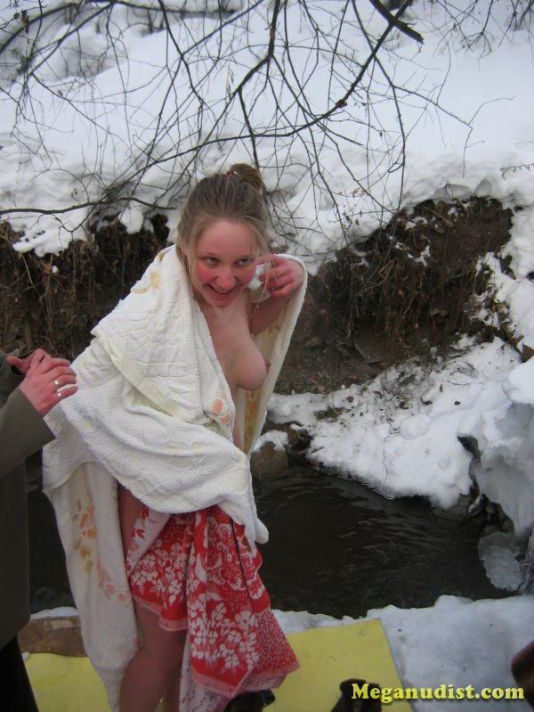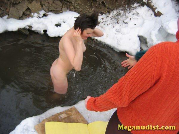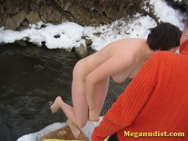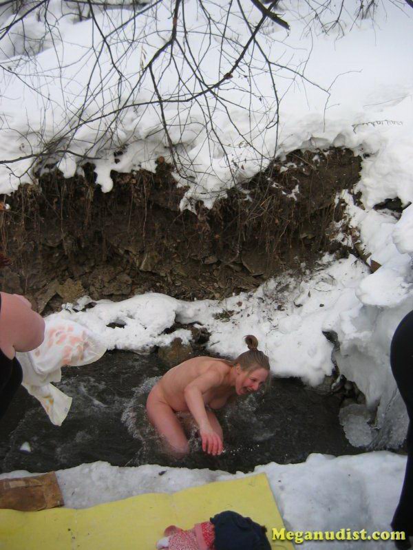 Зимнее купание нудистов в реке