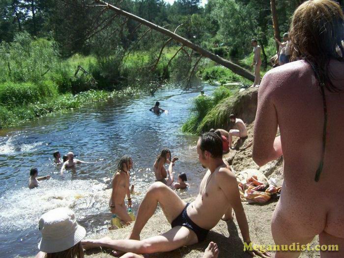 Поход нудистов на речку сегодня был в полном составе, ни кто не хотел оставаться в лагере и прозябать в палатках. Девушки с парнями отправились всей толпой. Ну вот они и у озера, скидываем скорее одежду кто то крикнул и все тот час это и сделали. Речка закипела от стольких людей и с удовольствием приняла всех кто пожелал остудить свой пыл, ведь жара стояла сильная.