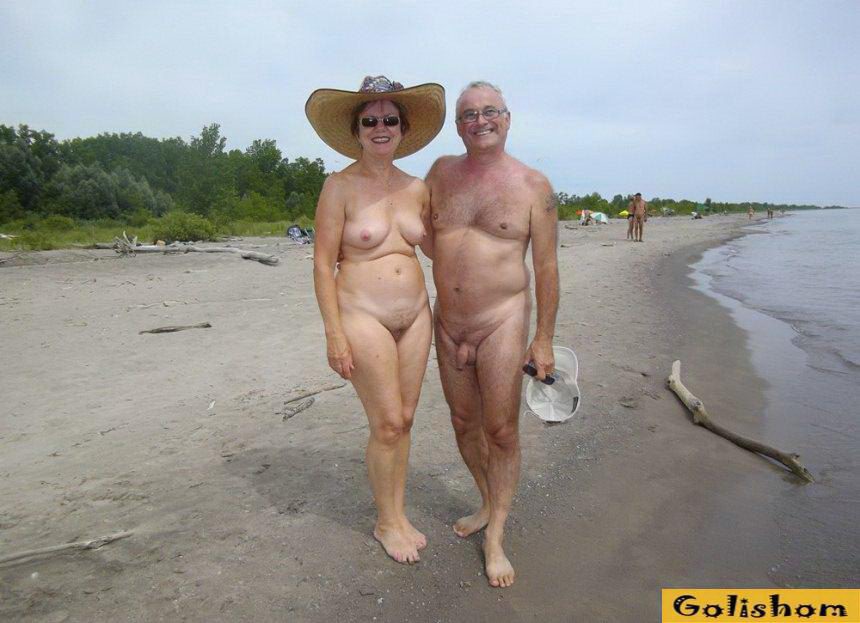 На морском побережье в обнаженном виде