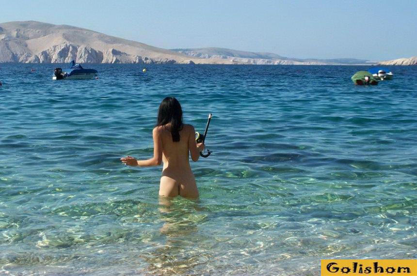 Голая нудистка на море