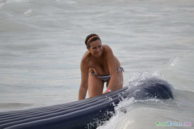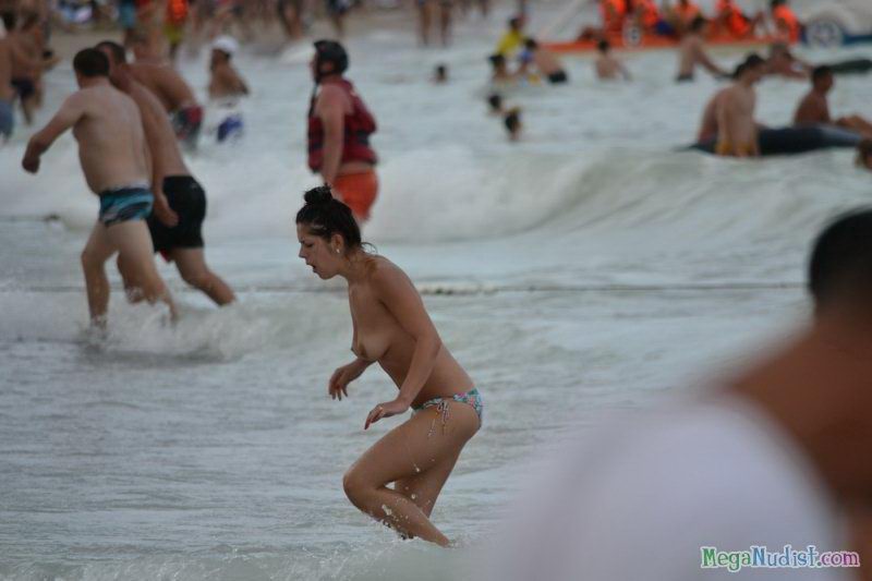 Теплая вода моря так привлекает людей, что на пляже собралось очень много народа и среди них есть конечно и нудисты. Люди которые не признают отдых на пляжах в одежде и с удовольствием скидывают с себя все что только может помешать приятному отдыху голышом. Девушки нудисты обнажили свои красивые аппетитные сиськи и словно манят к себе своей свободой поведения. Как же прекрасен отдых в таких местах...