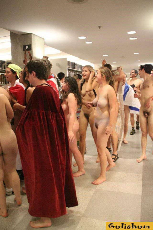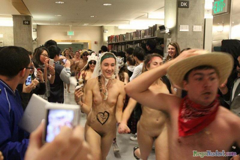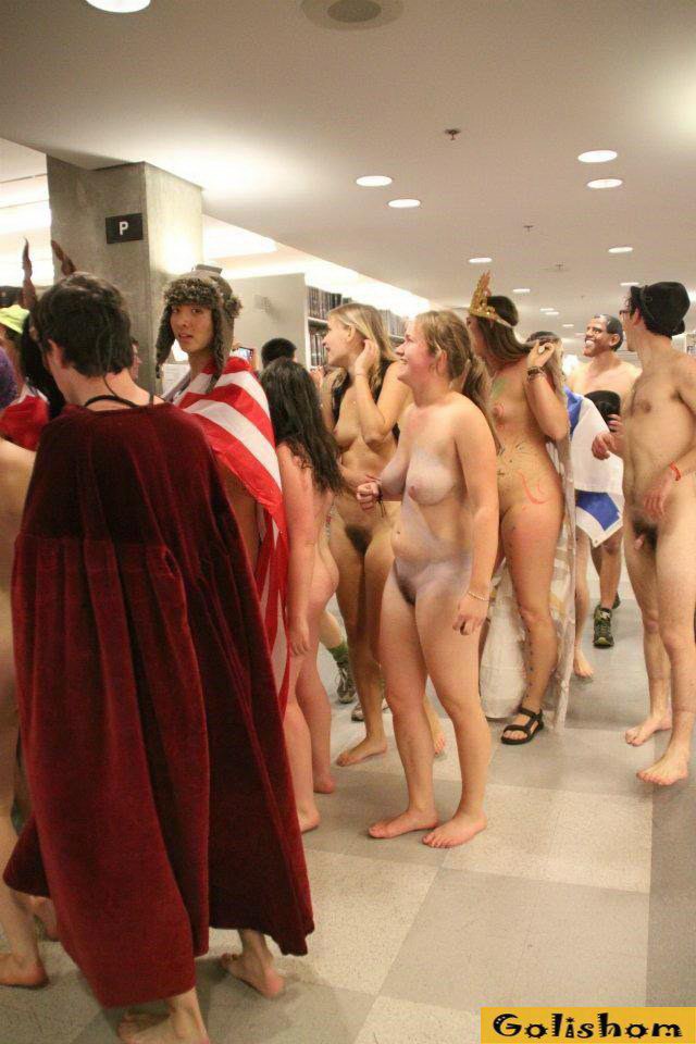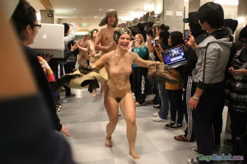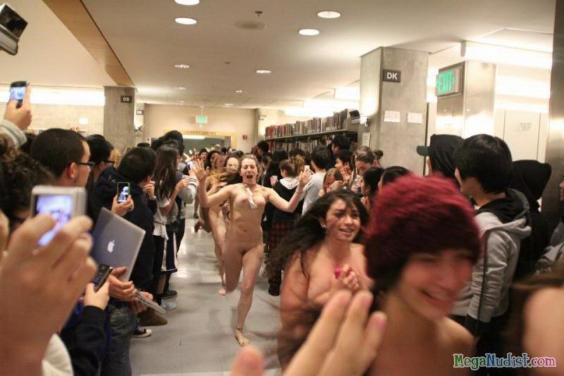 Нудисты решили посетить библиотеку в голом виде, много студентов разделись до гола и принялись расхаживать по читальным залам. Все это было настолько необычно, что тут же на это место слетелось много журналистов и все это было заснято на камеру. Но нудистам только это и нужно было, они с большим наслаждением продолжили свои прогулки по библиотеки, а зеваки только смотрели на все это раскрыв рты...