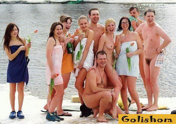 Зимнее купание нудистов в реке
