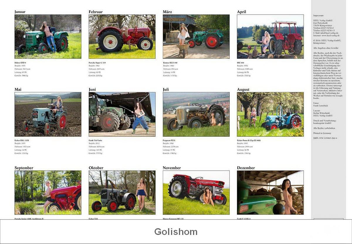 Немецкий эротический календарь под названием "Jungbauerntraume", что можно перевести как "Мечты молодого фермера", содержит снимки 12 полуобнаженный девушек на фоне тракторов в сельской местности. Такой Рождественский календарь может стать отличным подарком для одинокого фермера. Стоит календарь 14,55 Евро.