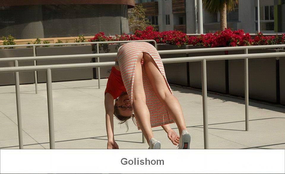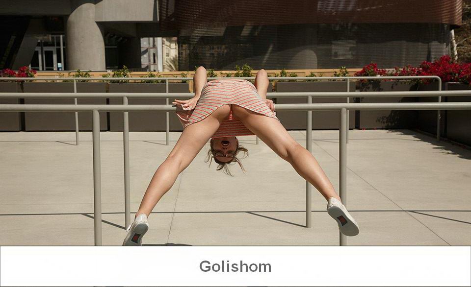 Забавная девушка сегодня собралась прогуляться по городу и немного подурачится. Она надела свои любимые полосатые трусики и задорно их демонстрировала раздвигая ноги прям спортивной площадке, а после и дома. Но обидно, тема ее письки так и не раскрыта, будем ждать продолжения.