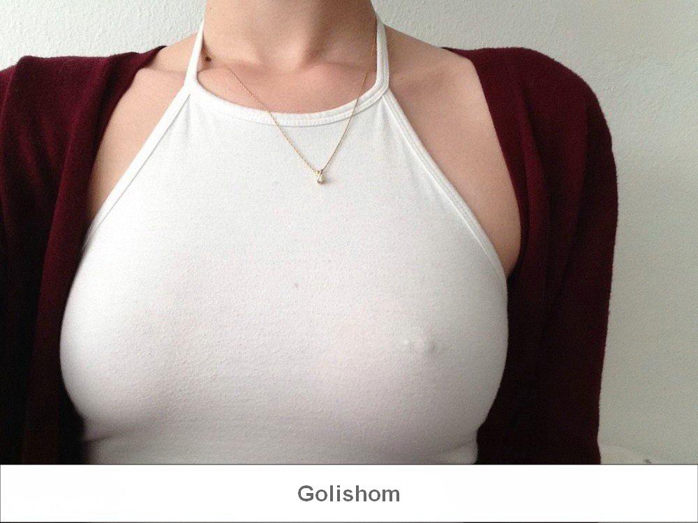 Подборка фотографий с девушками, которые не любят одевать на свои груди лифчик и обожают когда видны их торчащие от возбуждения соски через платье или футболку. С такими грудями бюстгальтер не нужен 100%.