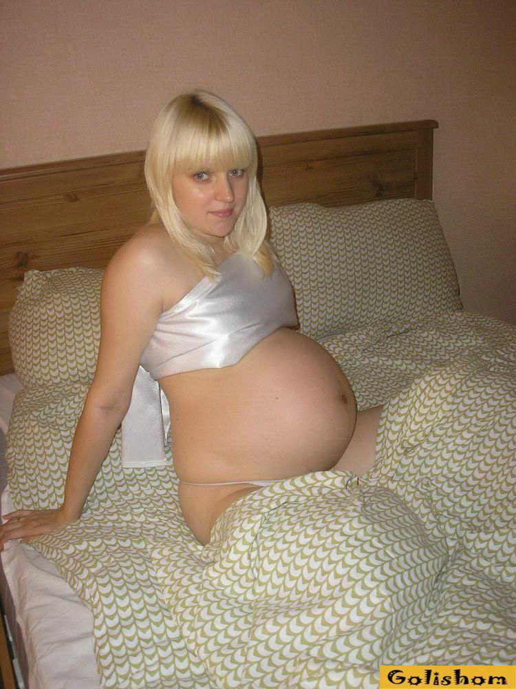 Беременная блондинка у себя дома