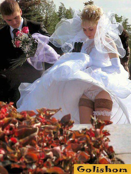 Голые невесты всегда привлекали особое внимание и мы всегда были любителями подробностей что находится у них под юбками. Фотографы оказавшиеся в таких местах, стараются не упустить ни одного момента, ведь они тоже любители скандальных фотографий с засветами девушек.